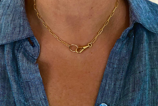 Swivel lock paperclip link chain necklace in 14KT Gold filled.