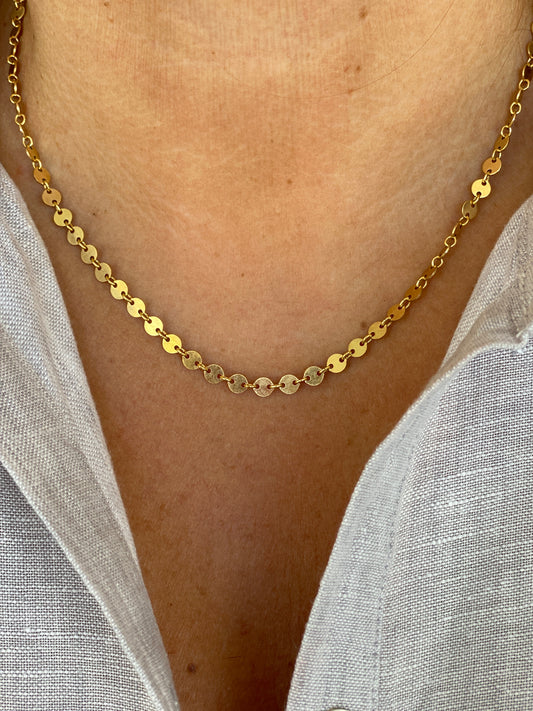 Palermo necklace in 5mm Gold beads on chain in 14KT Goldfilled.