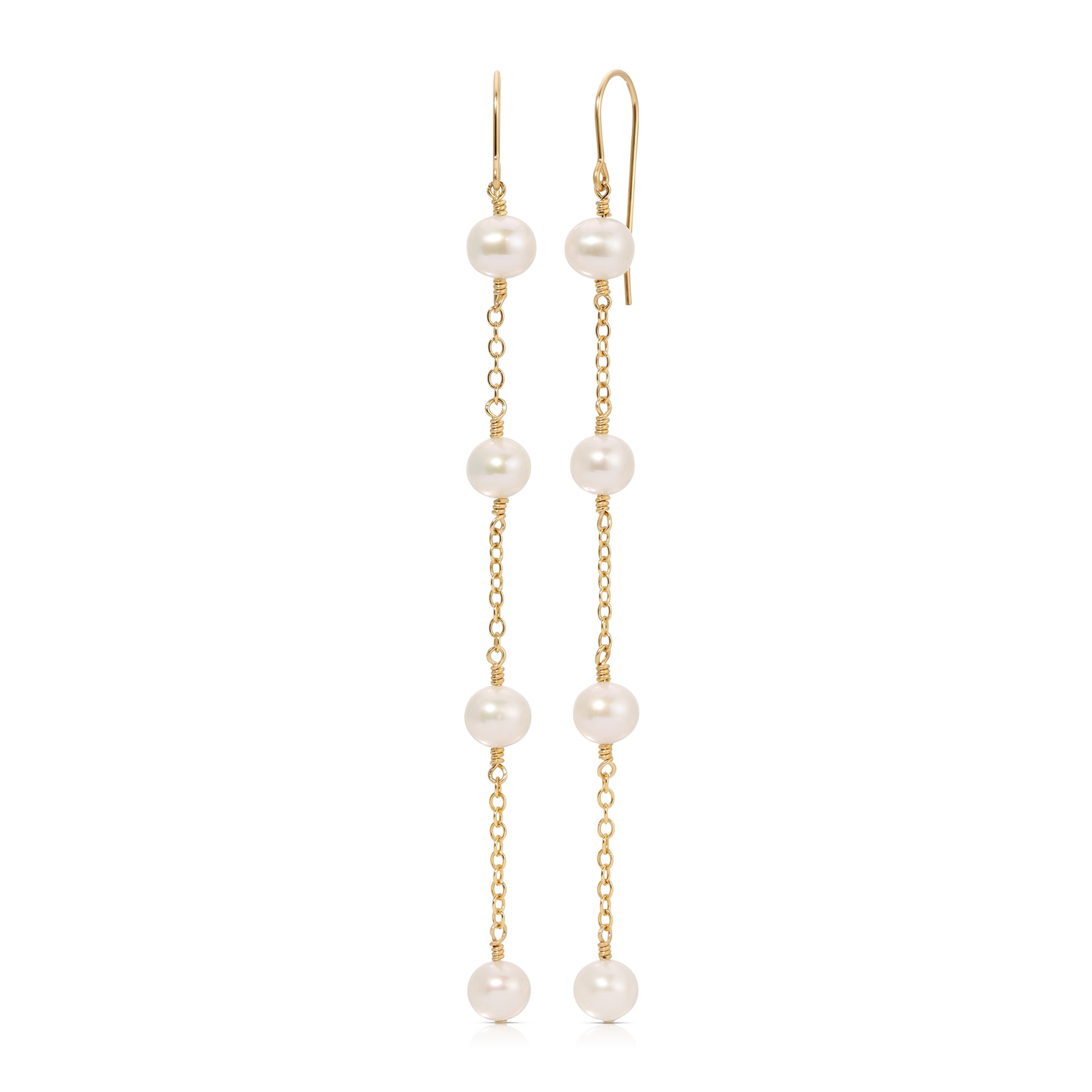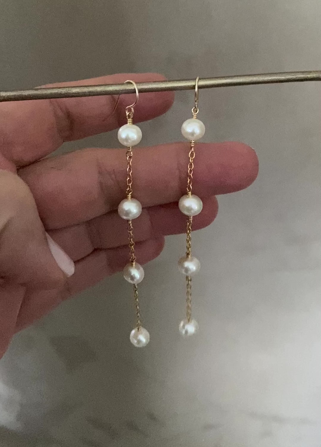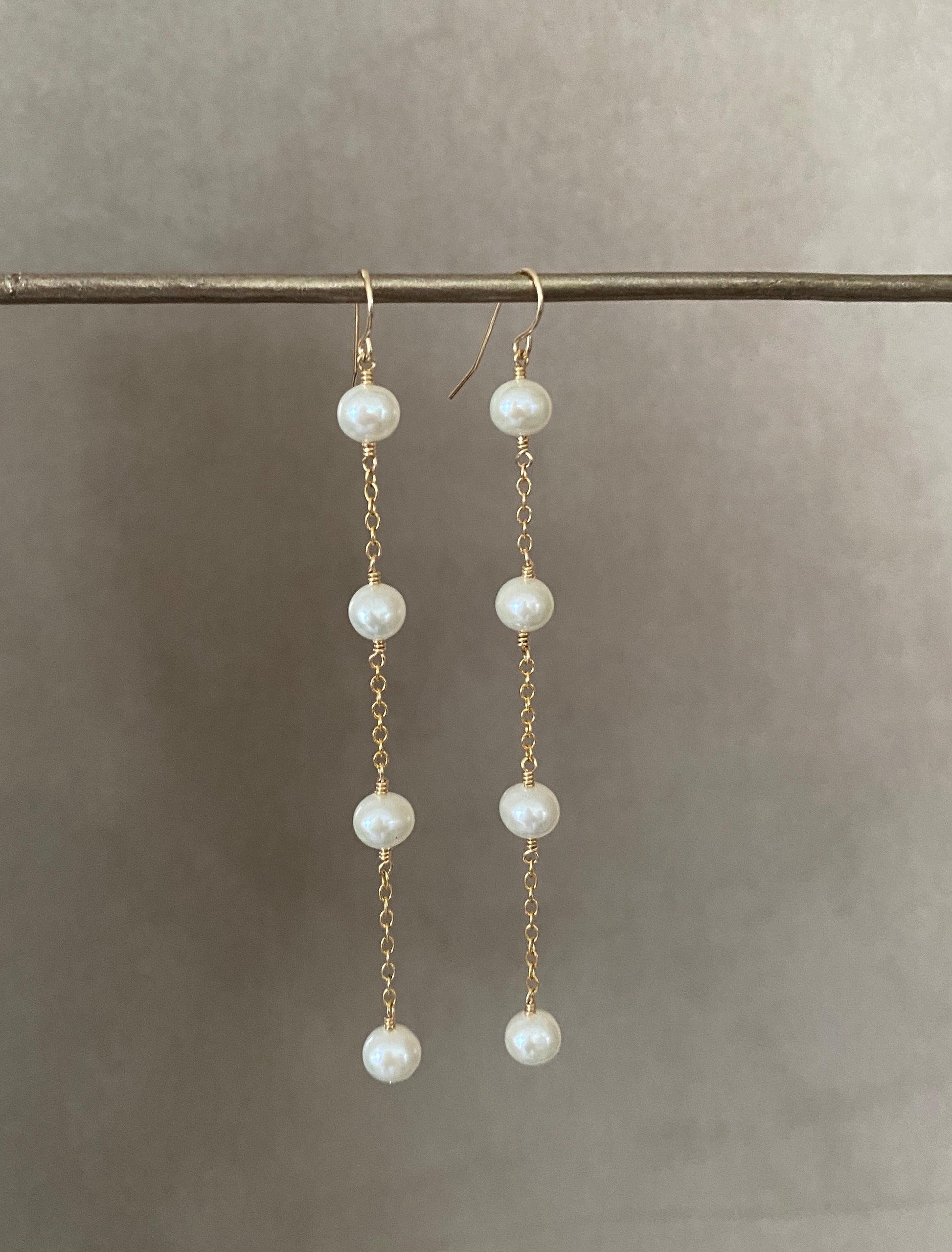 Four freshwater pearls measuring 6-6.5mm are wire wrapped into a gold filled chain measuring 4" long.