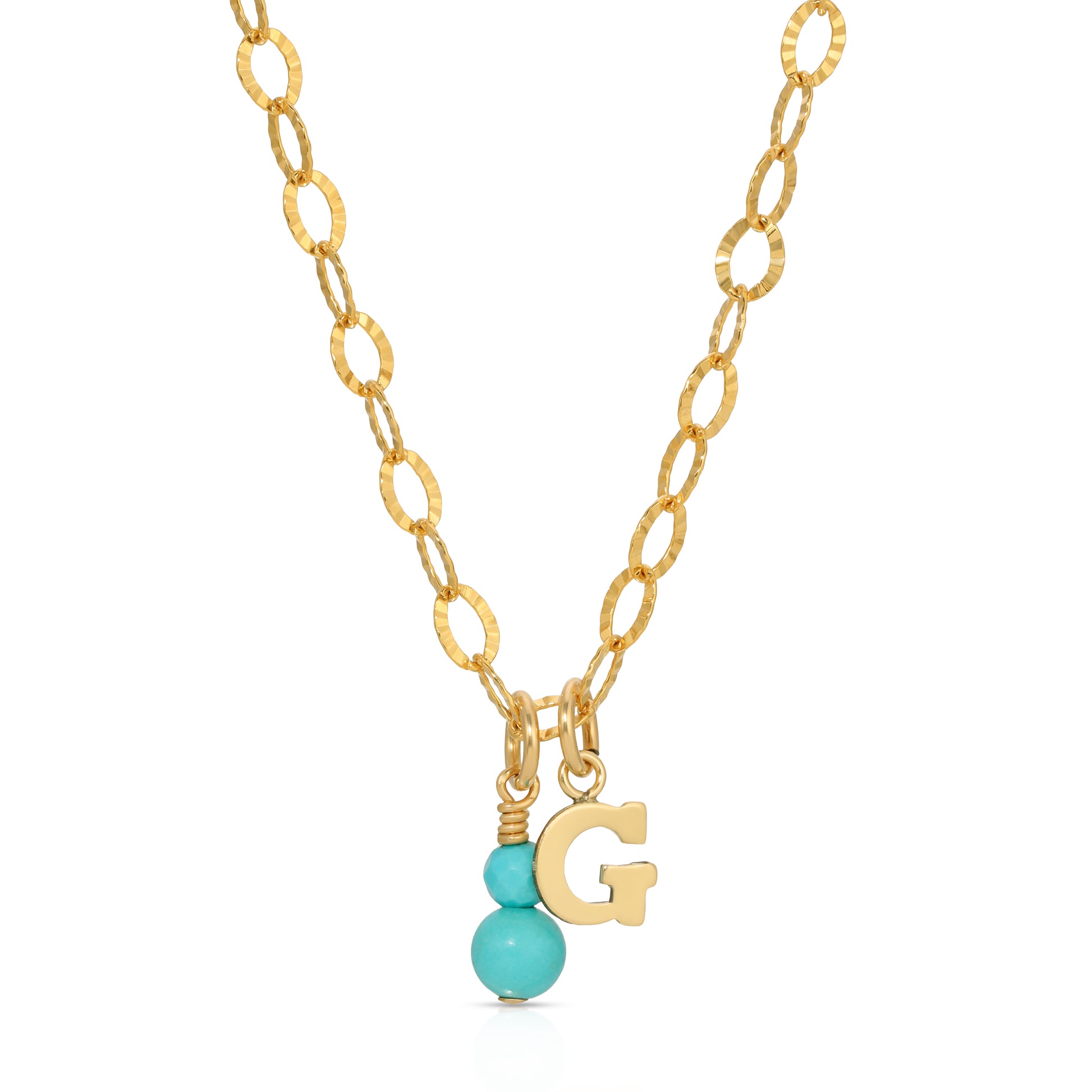 Initial necklace with choice of Turquoise cross or charm in 14KT Goldfilled.