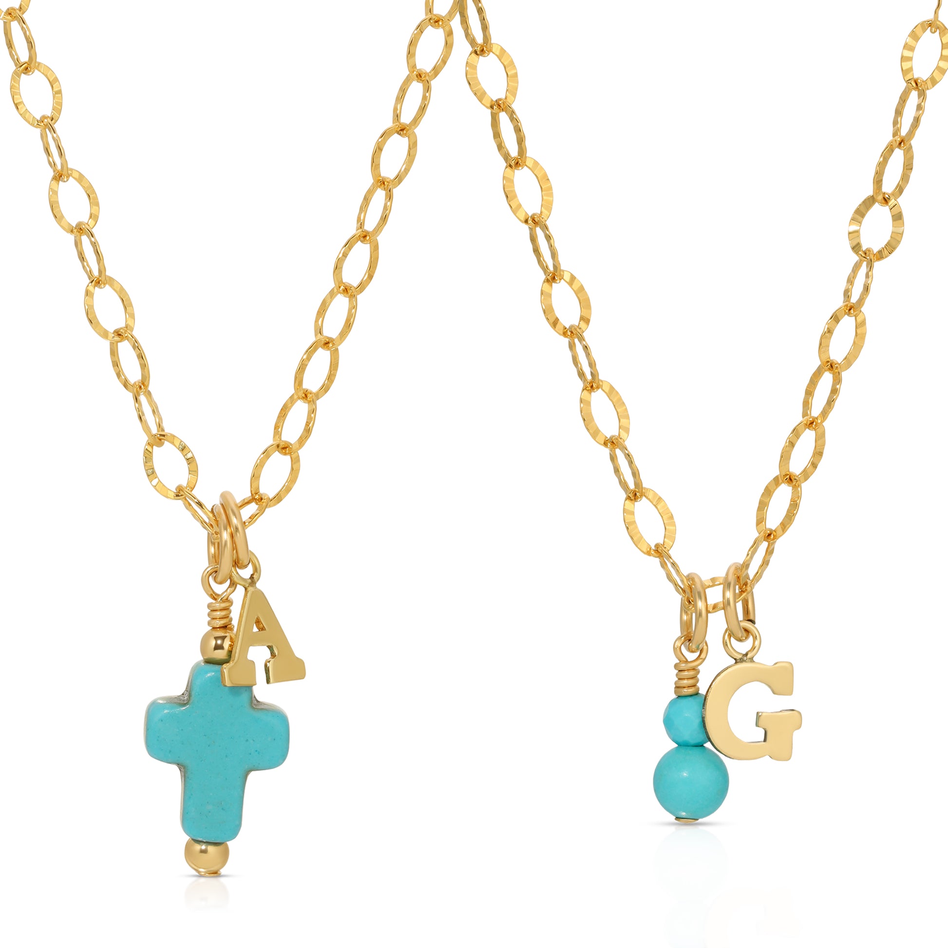 Create a personalized look with an Initial pendant and your choice of Turquoise cross or Bead charm options.