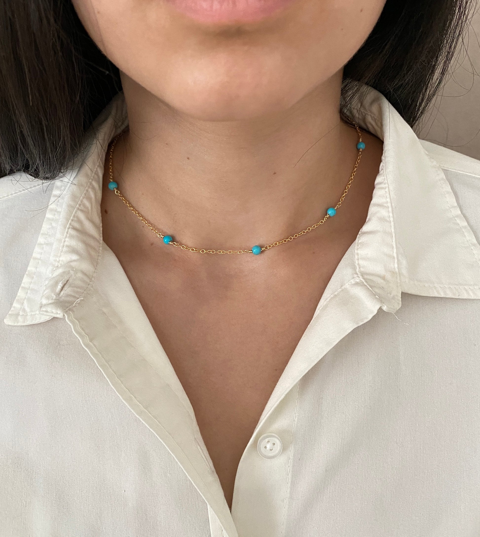 Isabella necklace with Turquoise beads in 14KT Goldfilled.