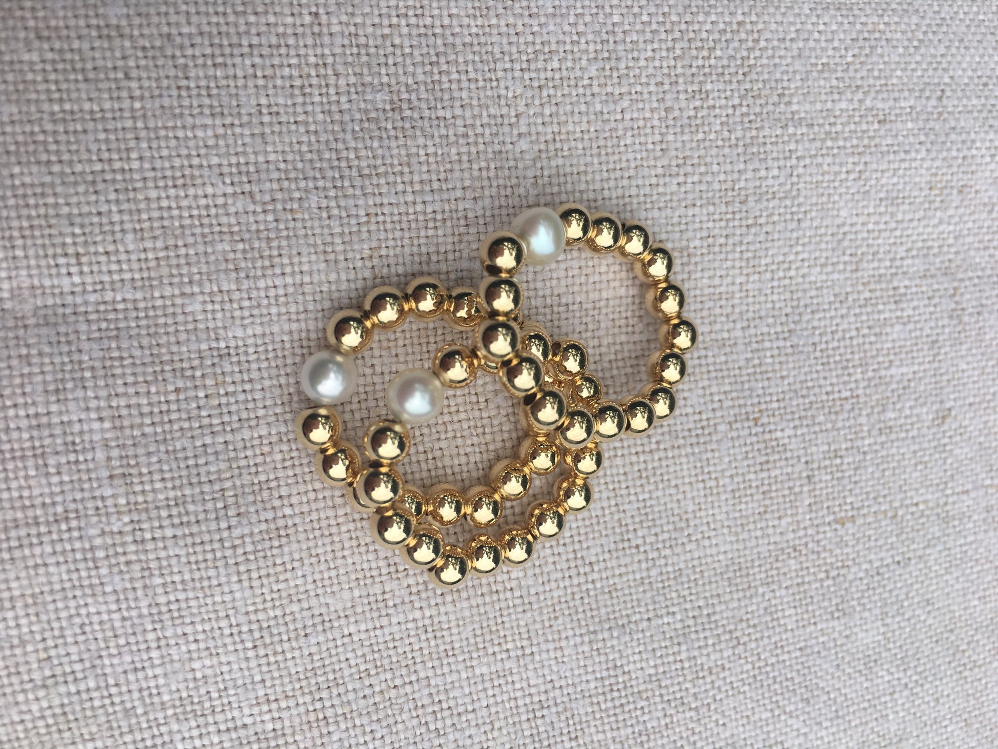 Leona Gold ball and pearl stacking rings in 4KT Gold filled