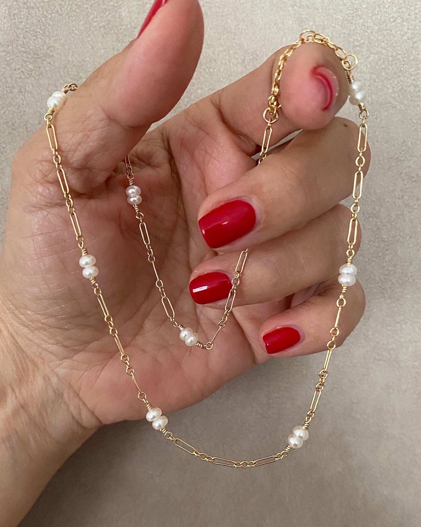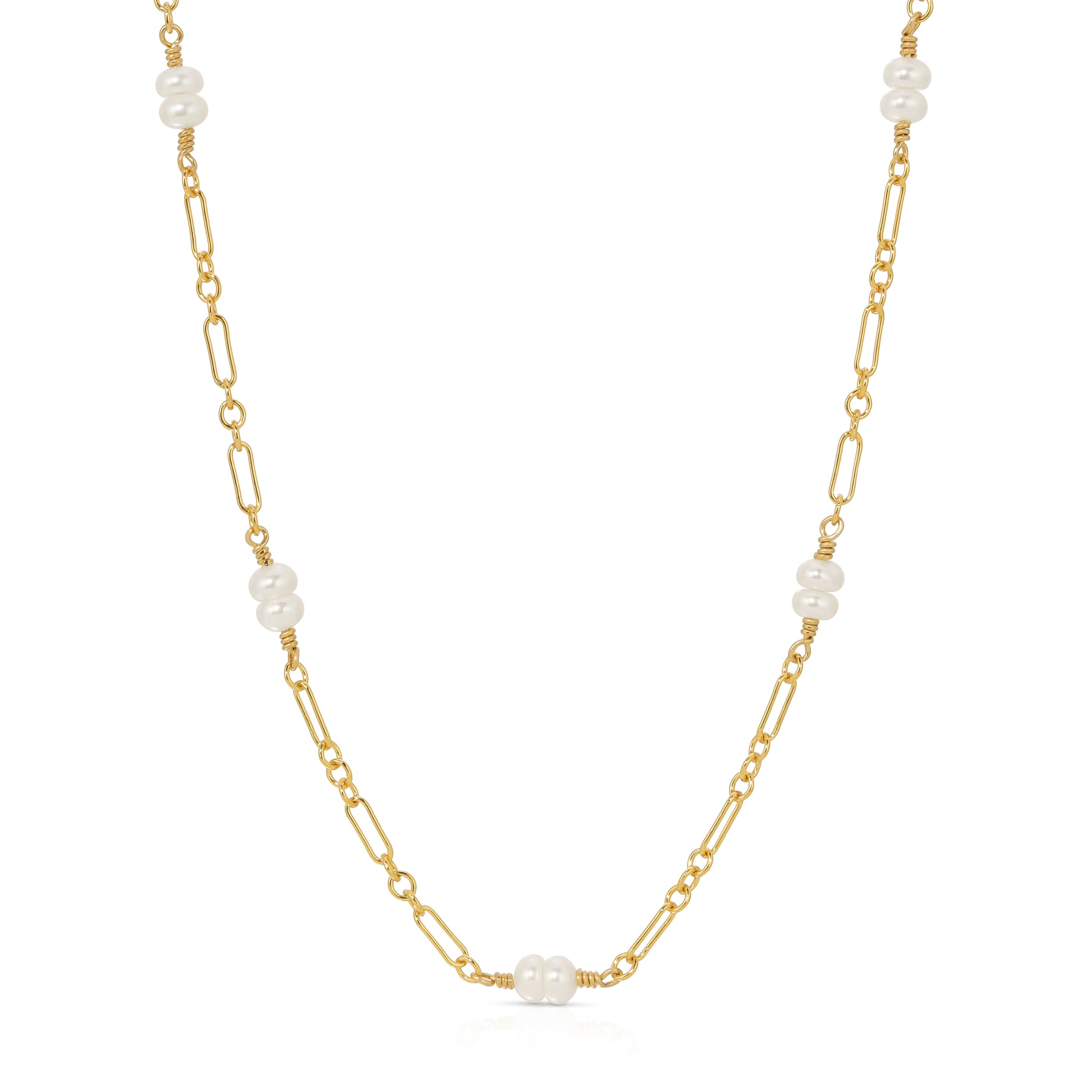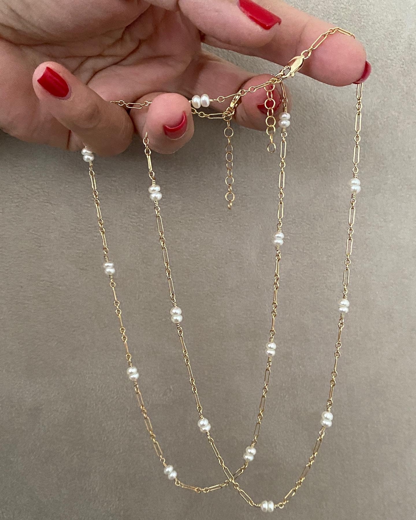 Marguerite necklace with double Pearls in 14KT Gold filled chain.