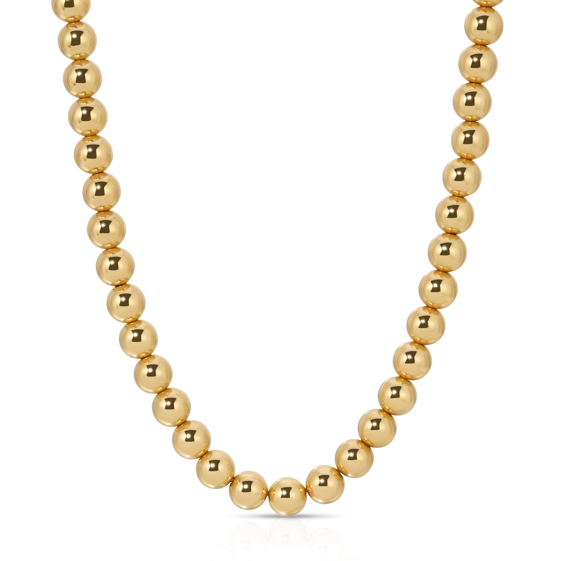 The Palermo 6mm necklace is made entirely in 14KT Gold filled with 6mm Gold beads strung on chain finished with a lobster claw. Adjustable length from 15" to 17".