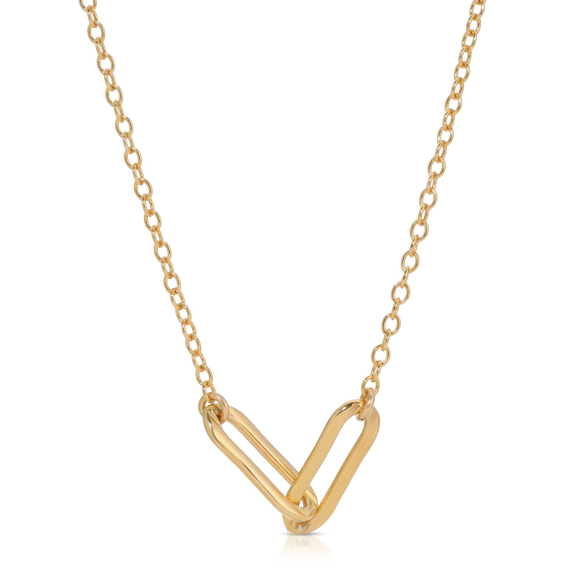 The Eros necklace features a forever intertwined links charm made in 14Kt Goldfilled. Adjustable from 16" to 18".