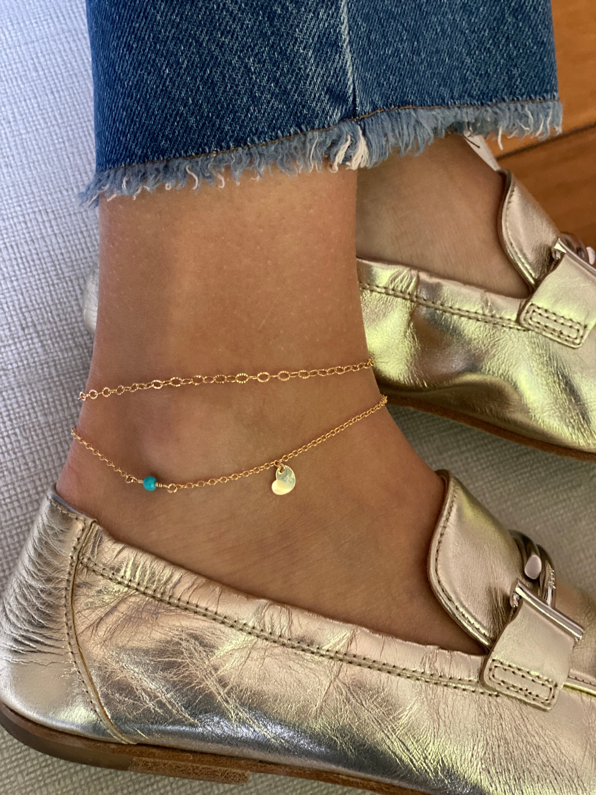 The Evelyn anklet in 14KT Goldfilled.