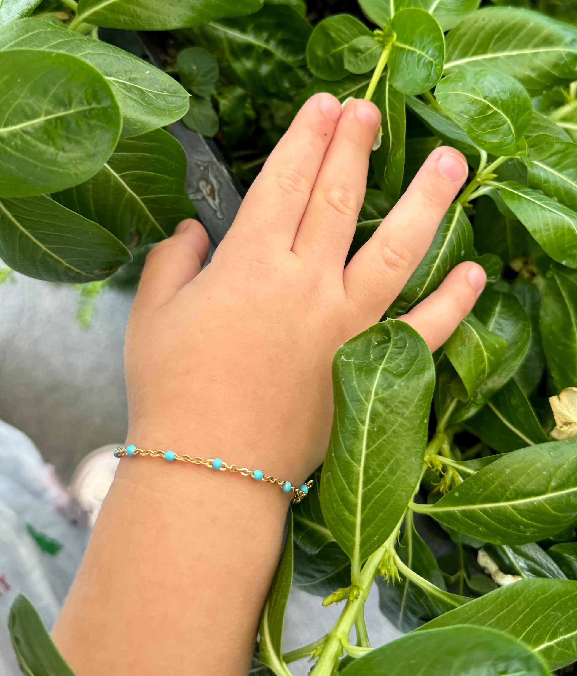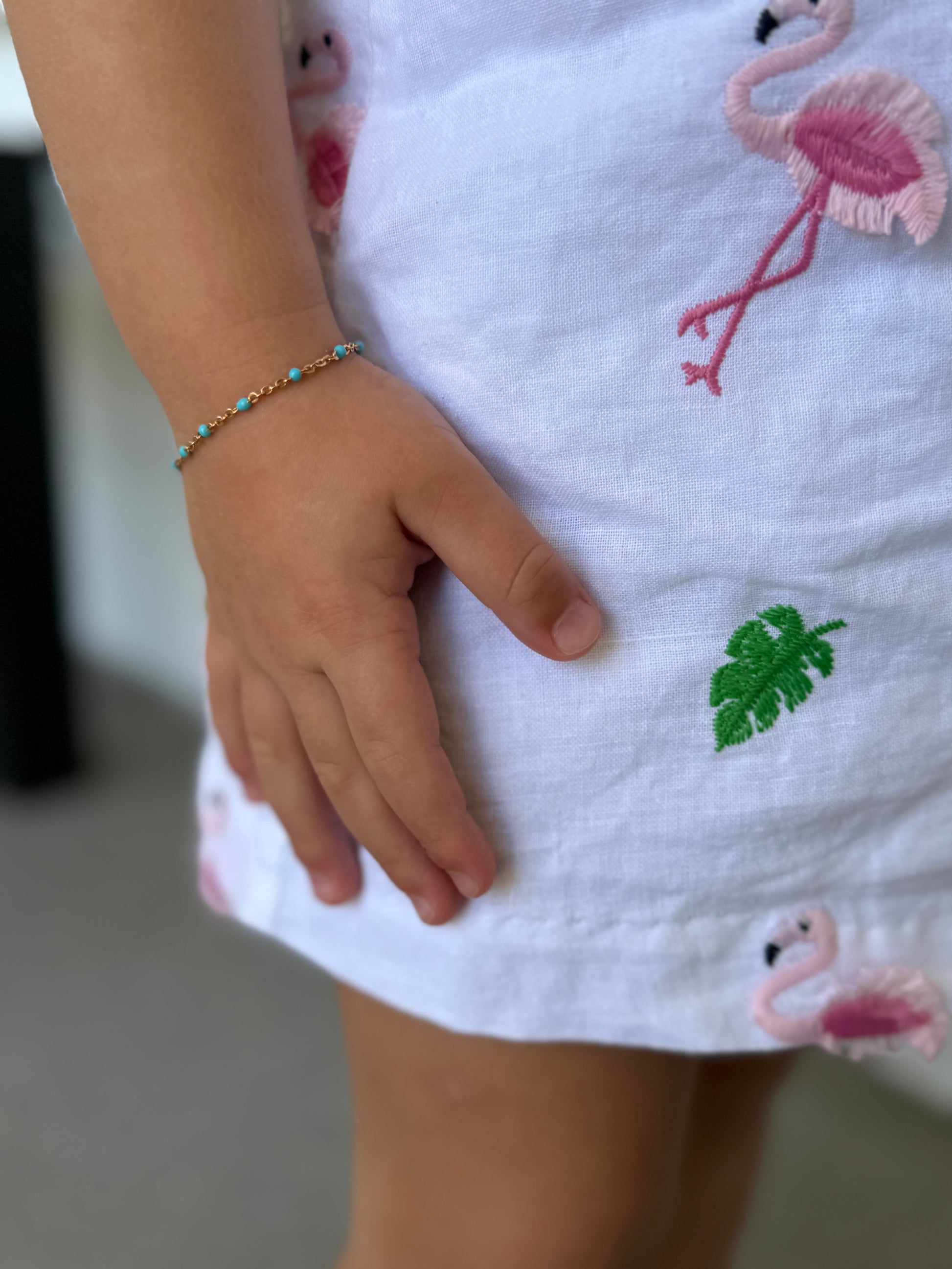 Just adorable Turquoise bead bracelet for my 3 year old. comfortable fit and great quality.
