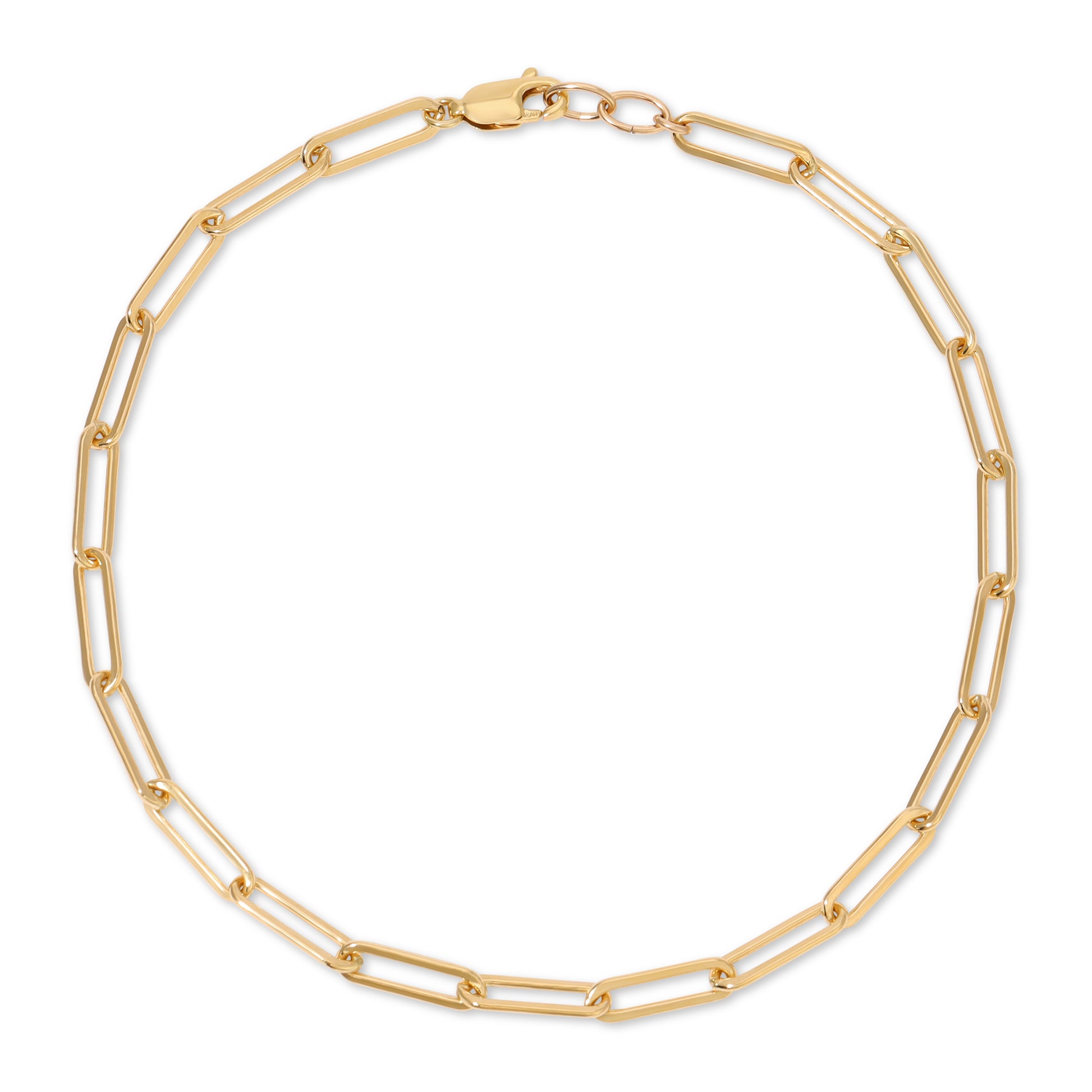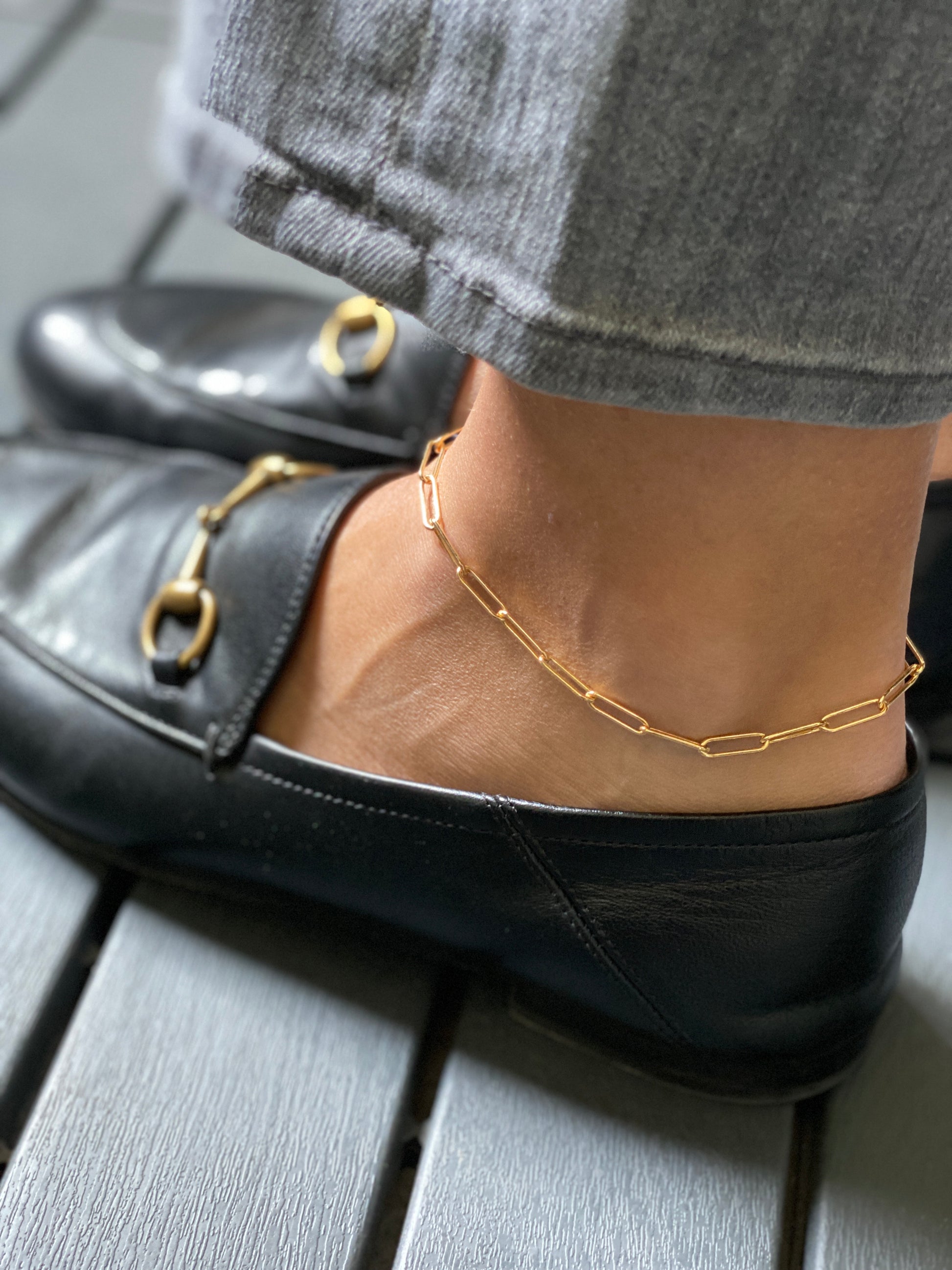 The Remy paperclip link anklet will elevate your look and can be worn all year long with sporty or dressy styles. Made entirely of 14KT Gold filled measuring 10".