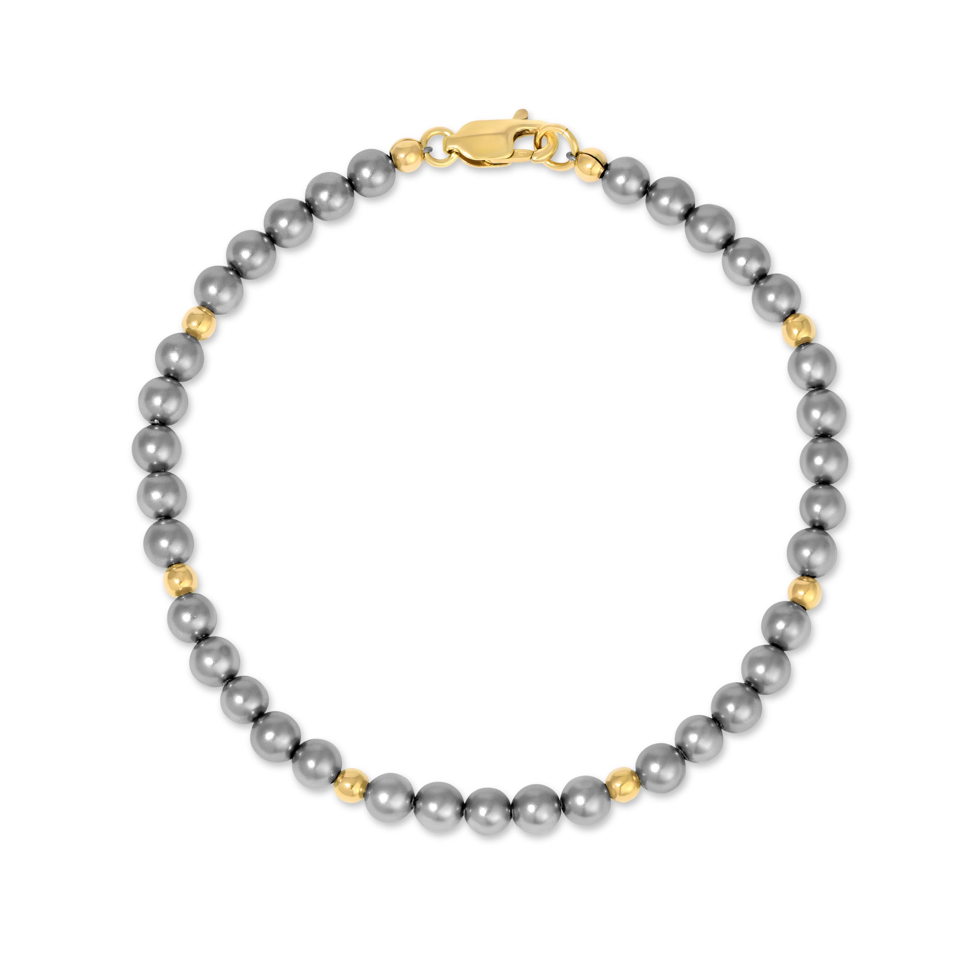 Using shell pearl materials, The Sheila bracelet is perfect for layering with gold bracelets. 14KT Gold filled beads and hardware.